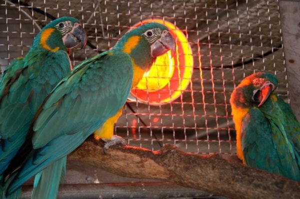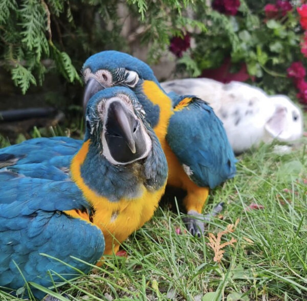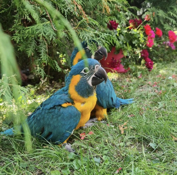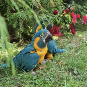 Physical Description: Blue Throated Macaws are frequently mistaken for Blue and Gold Macaws, and for good reason. At first glance, there is no obvious difference between the two. However, if you are lucky enough to see them side by side, the difference becomes obvious. Blue Throated Macaws maintain that same beautiful blue and yellow contrast as the Blue and Gold. Everything on the upper half of the bird – their heads, back, wings, and top of the tail – is blue. Everything on the under side – their chest and belly, under their wings, and under their tail – is yellow. However, there is a slightly different hue to the blue of a Blue Throated Macaw when compared to a Blue and Gold Macaw. Also, the Blue and Gold Macaw has a black throat, while the Blue Throated Macaw, obviously, has a blue throat. Blue Throated Macaws are also somewhat smaller than Blue and Gold Macaws.