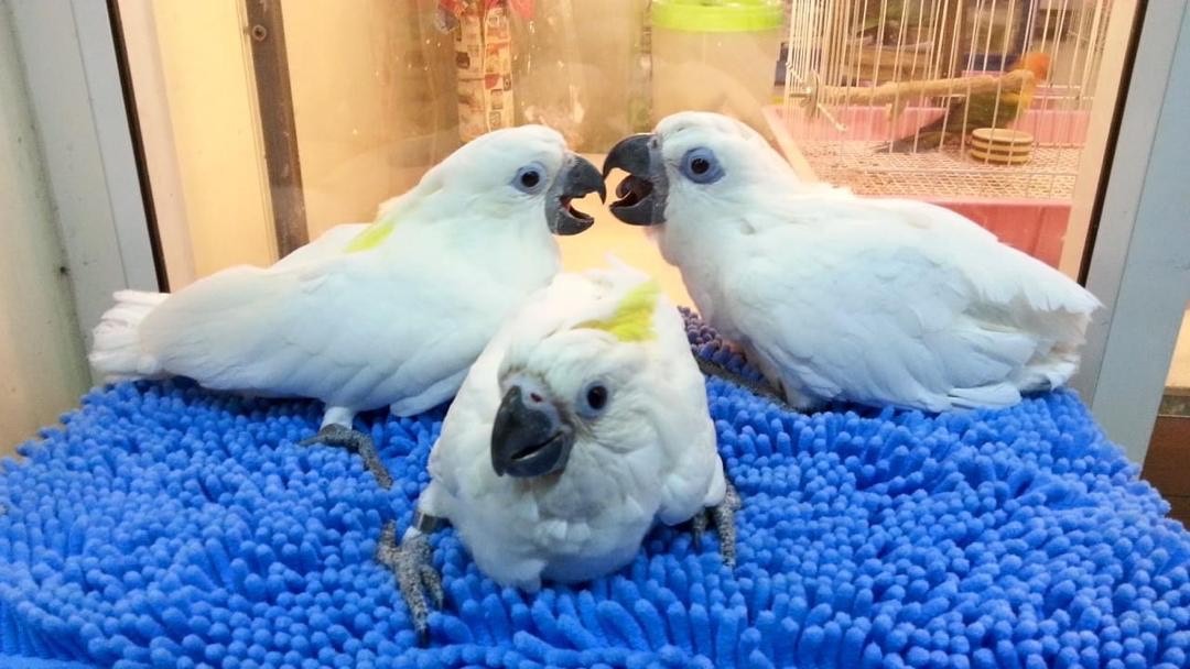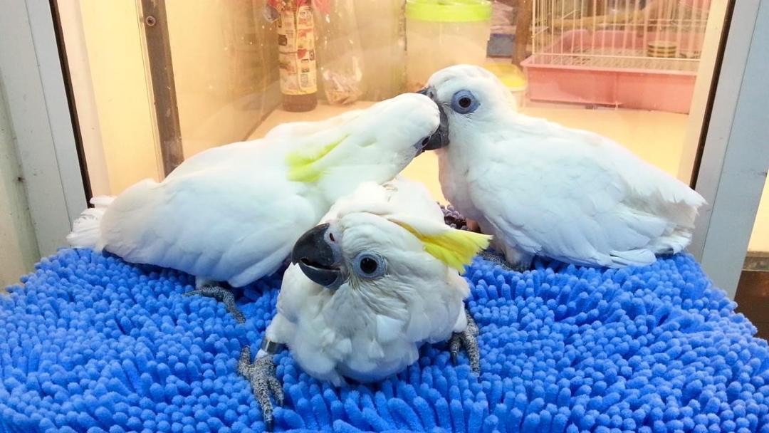 There are 21 species of cockatoos in the world. The most common species in captivity include the Moluccan, Goffin’s, umbrella, sulfur-crested (greater and lesser), and bare-eyed cockatoos. All cockatoos have a crest that can be lifted and lowered. The cockatoo bird family is primarily divided into two subfamilies: white cockatoos (Cacatua species) and dark cockatoos (Calyptorhynchus species). There are a few outlying species that do not fit into either category, like cockatiels, which are the smallest member of the cockatoo family.